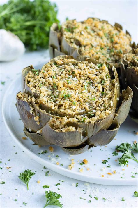 Artichoke With Bread Crumbs. Web turn artichoke around and cut off approximately 1/2 inch to 1 inch of the tip so the top is partially flat. Web roasted artichokes with lemon garlic breadcrumbs 2 large artichokes, stem and ends trimmed zest.