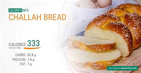 Challah Bread Calories. Slice (31 g ) amount per serving calories 76 % daily value* total fat 1.2g 2% saturated fat 0.2g 1% trans fat 0g polyunsaturated fat 0.7g monounsaturated fat 0.3g cholesterol. The favorite choice for the term challah is 1 slice of challah egg.