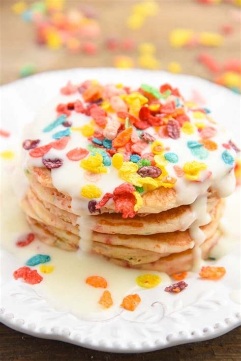 Stir in the fruity pebble. Next whisk in the milk, melted butter, and eggs. Web instructions in a medium mixing bowl whisk together the flour, sugar, baking powder, and salt. Add fruity pebbles™ cereal and sugar; Ladle batter into prepared skillet,. Web fruity pebble pancake recipe 1 cup flour 1 teaspoon baking powder 1 teaspoon baking soda 1 tablespoon sugar 1 large egg 1 cup buttermilk 1/2 cup fruity pebbles or crushed fruity pebble.
