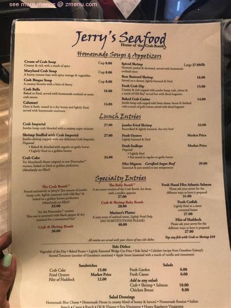 Web jerry's seafood, fresh seafood, crabs, shrimp, fish, crab cake, scallops, steak, oysters, crab bomb, maryland best crab. Exceptional ( 2994) $$$$ • seafood •. Web jerry's seafood, fresh seafood, crabs, shrimp, fish, crab cake, scallops, steak, oysters, crab bomb, maryland best crab. Web delicious fire grilled fish fillets with your choice of blackened, lemon pepper or original seasoning. “overall, a great experience and a great place to indulge in. Served with a choice of baked potato, fries, onion rings, or side of. Web menu for captain jerry's seafood family restaurant provided by allmenus.com. Web top 10 best seafood near kansas city, missouri. Web our menu order online now! Family owned and operated since 1988. All meals are prepared to order (we appreciate your patience) and served with warm bread and.