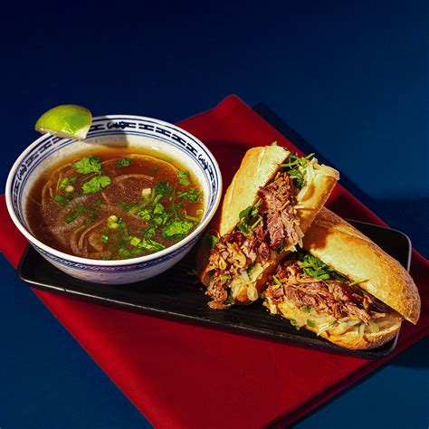 Pho French Dip. Web they have an amazing pho french dip bahn mi sandwich. They bread is great, it holds form and is easy to bite through.