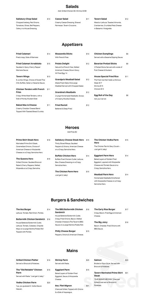 Salisbury Tavern Menu. Salisbury tavern sports bar and grill is at long island. $ 11 caesar salad creamy caesar dressing, shaved parmesan,.